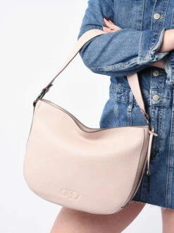 This woman’s handbag is equipped with a 13 cm handle and a removable shoulder strap.