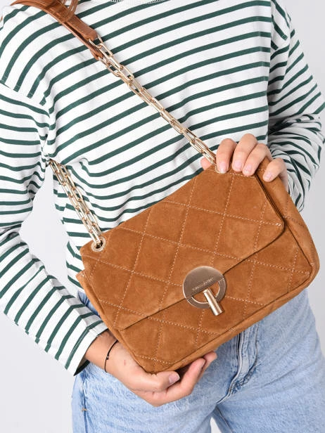 Here is the black quilted suede shoulder bag by Vanessa Bruno. It has a chain shoulder strap and a smooth leather shoulder strap. It is possible to wear it as a double chain according to your desires. It has a gold metal buckle closure. Its cotton-lined interior is organised into one compartment with a zipped pocket and a patch pocket for maximum organisation. Its trendy design will make this bag a must-have for the season.